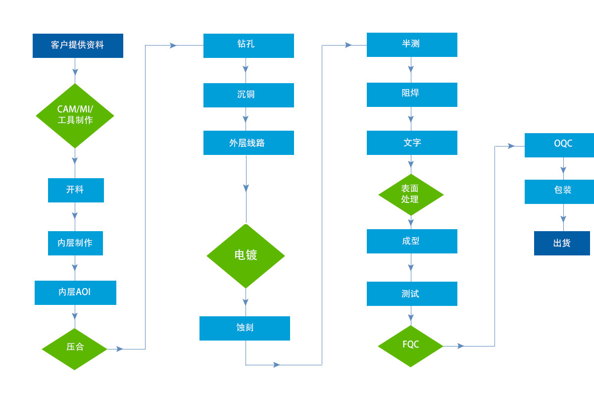 | 特殊加工 | 剛柔結合、混壓、板邊金屬化、埋盲孔、背鉆、半孔、阻抗控制等 | |